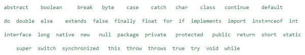 클래스, 메소드, 변수 선언, 객체 생성과 관련된 예약어들 (26개)