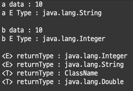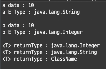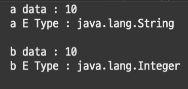 보다시피 제네릭 메소드는 제네릭 클래스 타입과 별도로 지정된다는 것을 볼 수 있다.
