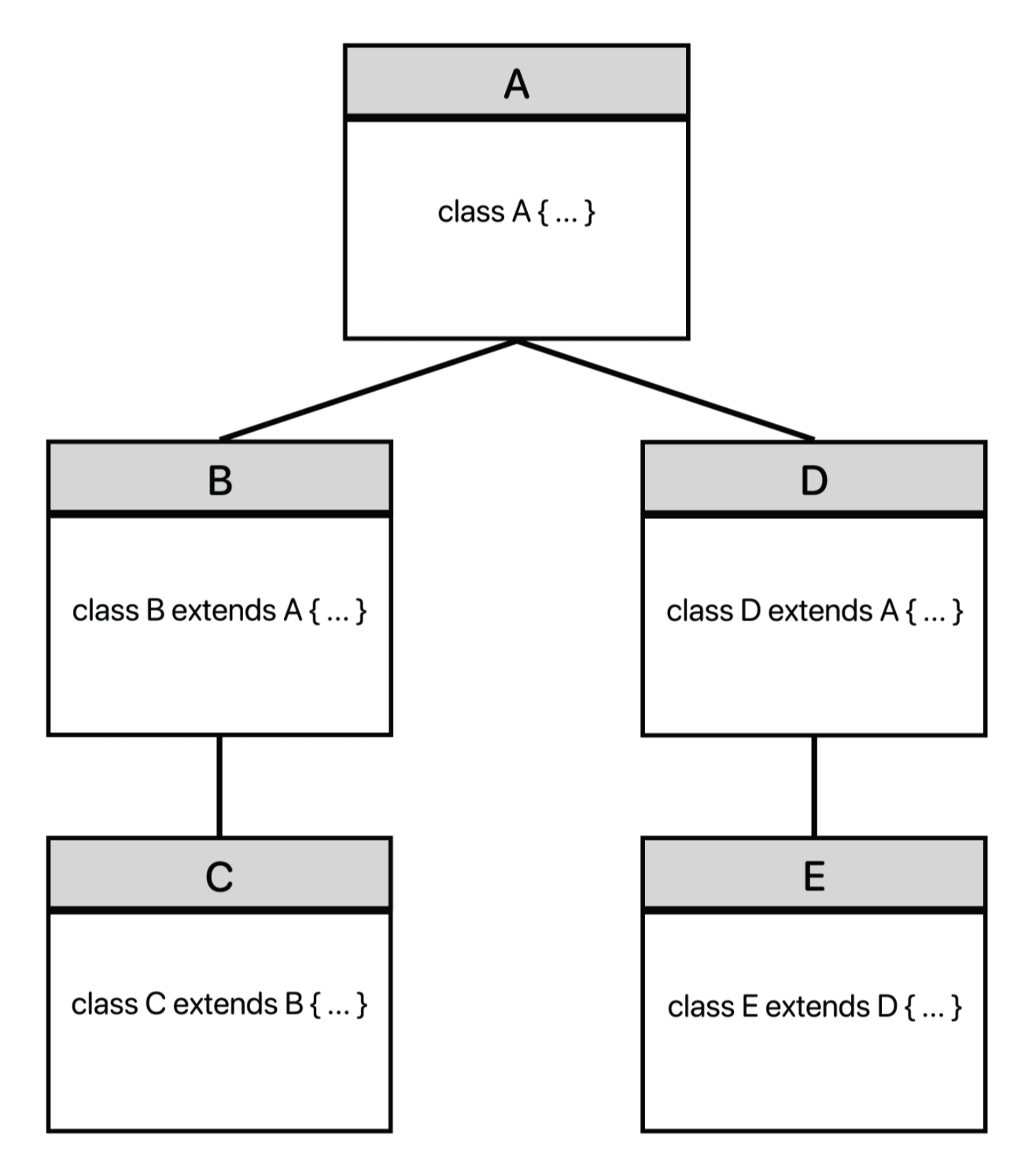 다음과 같이 서로 다른 클래스들이 상속관계를 갖고 있다고 가정해보자.