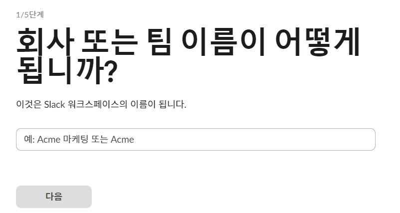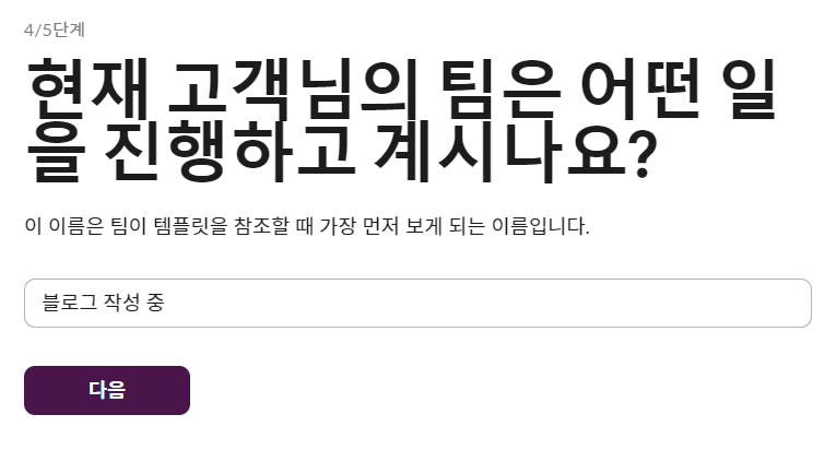 개설하게 되면 이 워크 스페이스를 함께 활용할 회사나 팀의 이름을 정한다.