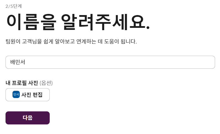 그리고 현재 워크 스페이스에서 사용할 자신의 닉네임이나 이름, 프로필 사진등을 정할 수 있다.