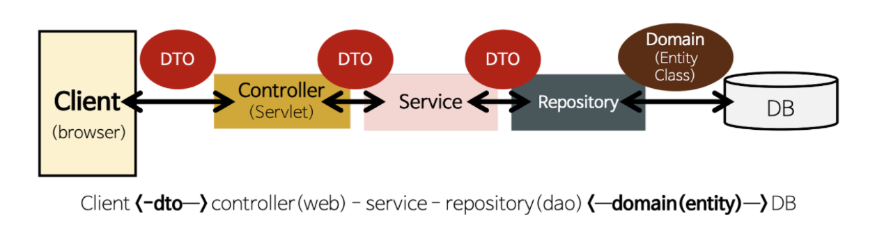 프로젝트의 DB 설계부분과 백엔드 사이의 관계가 보이도록 그려야 합니다. Spring boot 프로젝트를 한 경우에 아래의 이미지처럼 controller, service, repository를 나누어 백엔드 프로젝트를 구성했음을 명시해야 합니다.